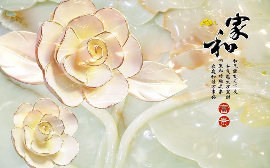 Фотошпалери 3D квіти та ієрогліфи східний стиль
