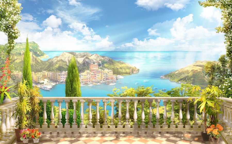 Фотошпалери Балкон з видом на море в хорошу погоду