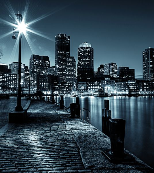 Фотошпалери Ліхтар на вечірній набережній чорно-білий