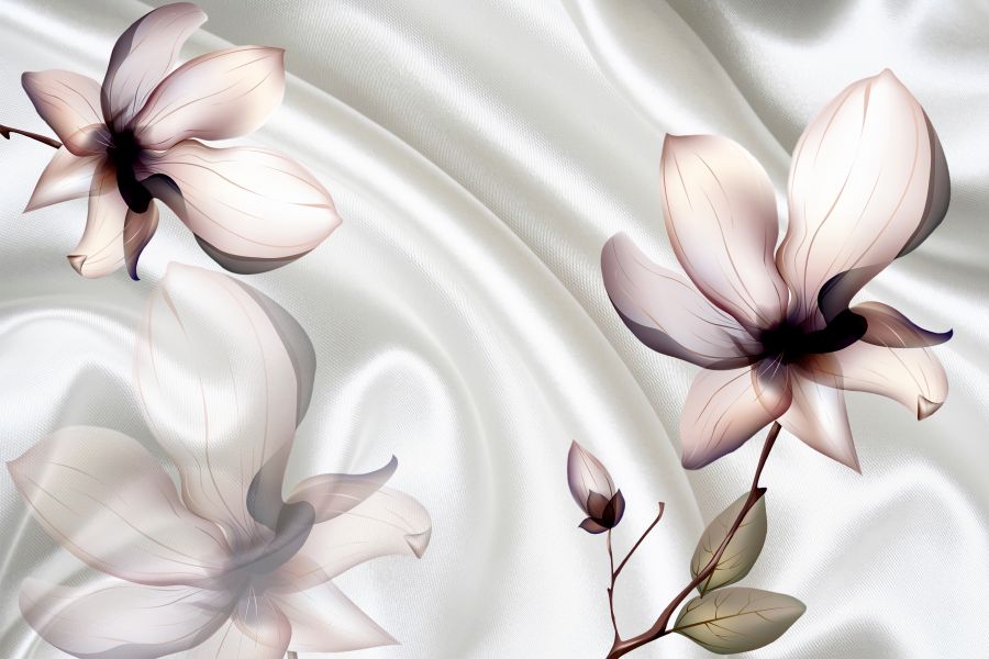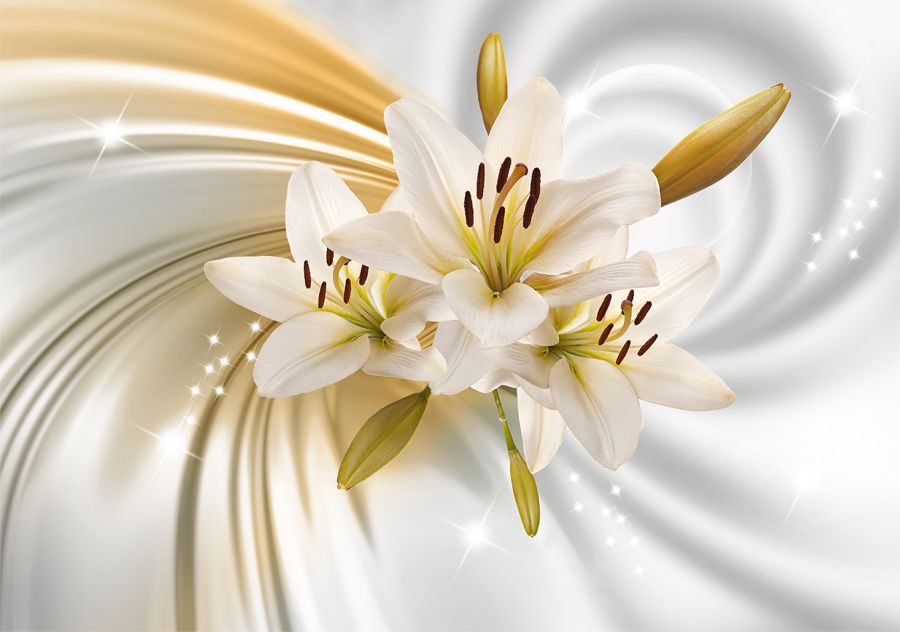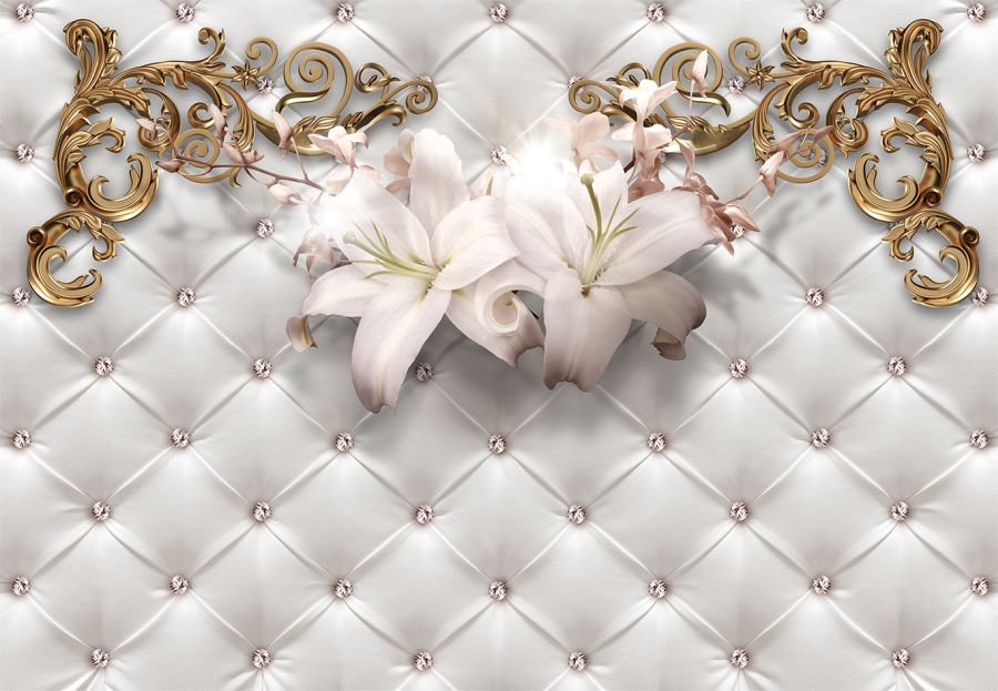 Фотообои 3д Белые орхидеи на зеленом фоне