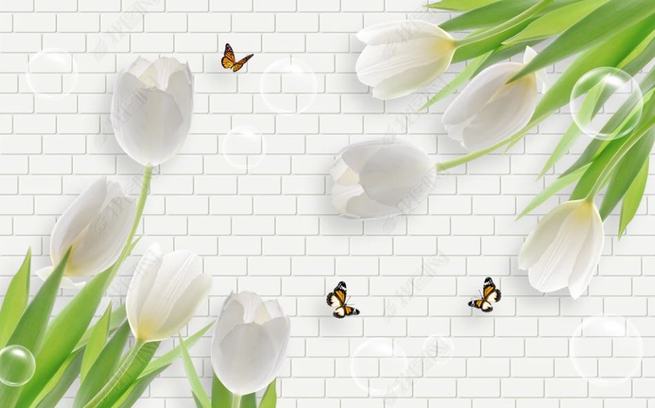 Фотообои 3Д белые цветы
