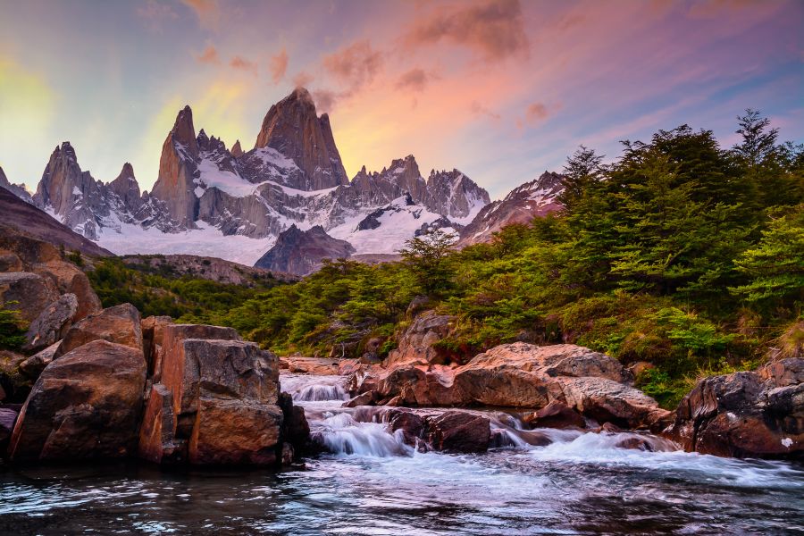 Фотообои водопад в цветущих горах